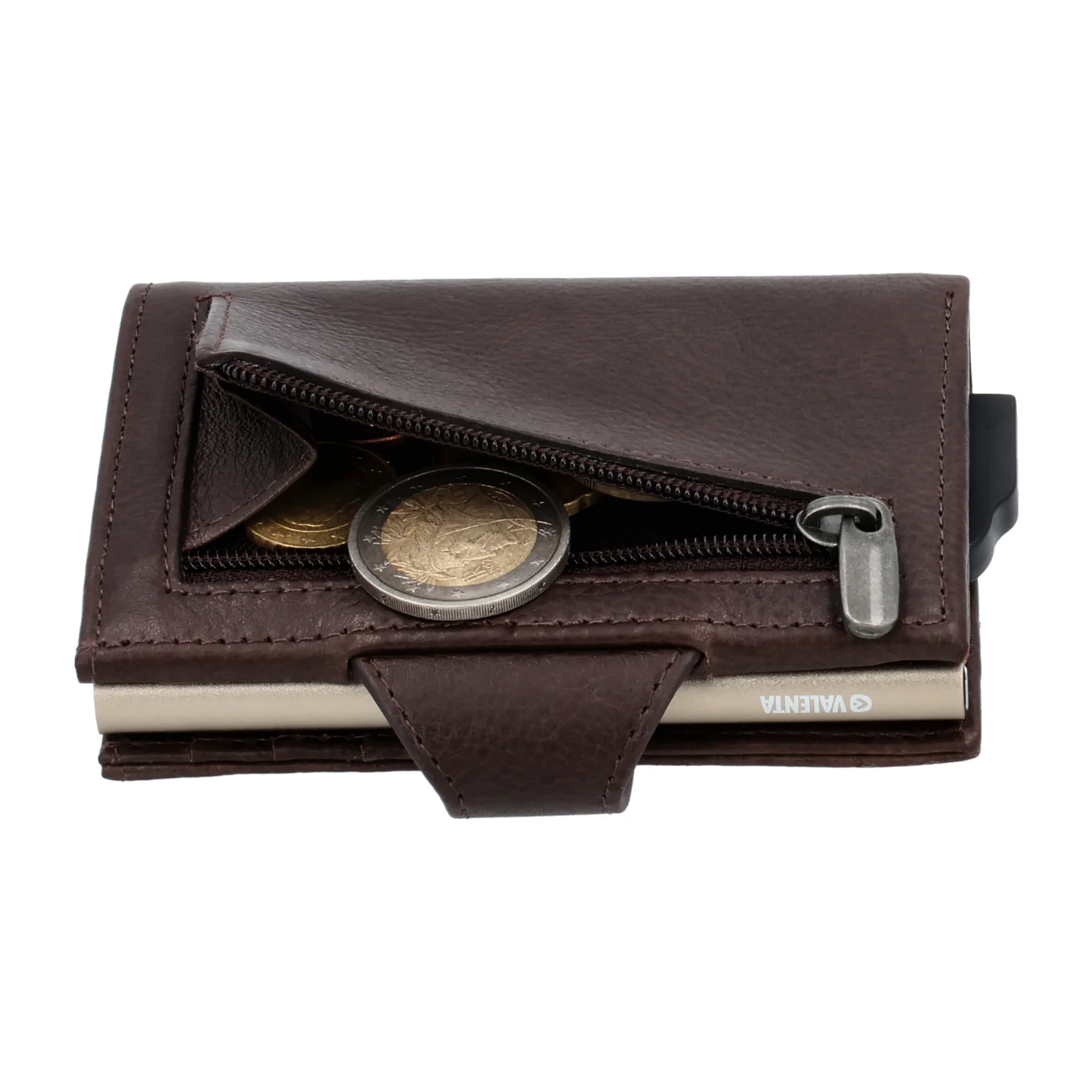 Το δερμάτινο πορτοφόλι της Valenta έχει χώρο για 4-6 κάρτες, χαρτονομίσματα και διαθέτει ακόμη και μια εύχρηστη θήκη για κέρματα στο πίσω μέρος. Έτσι, έχετε πάντα όλα όσα χρειάζεστε στα χέρια σας.