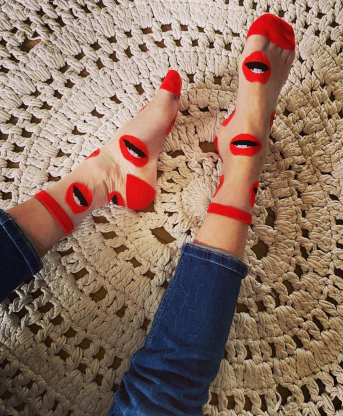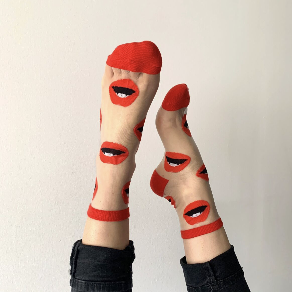 Διάφανα καλτσάκια με σχέδιο κόκκινα χείλια.