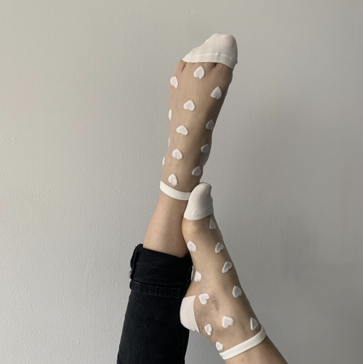 Διάφανα καλτσάκια με άσπρες καρδιές.