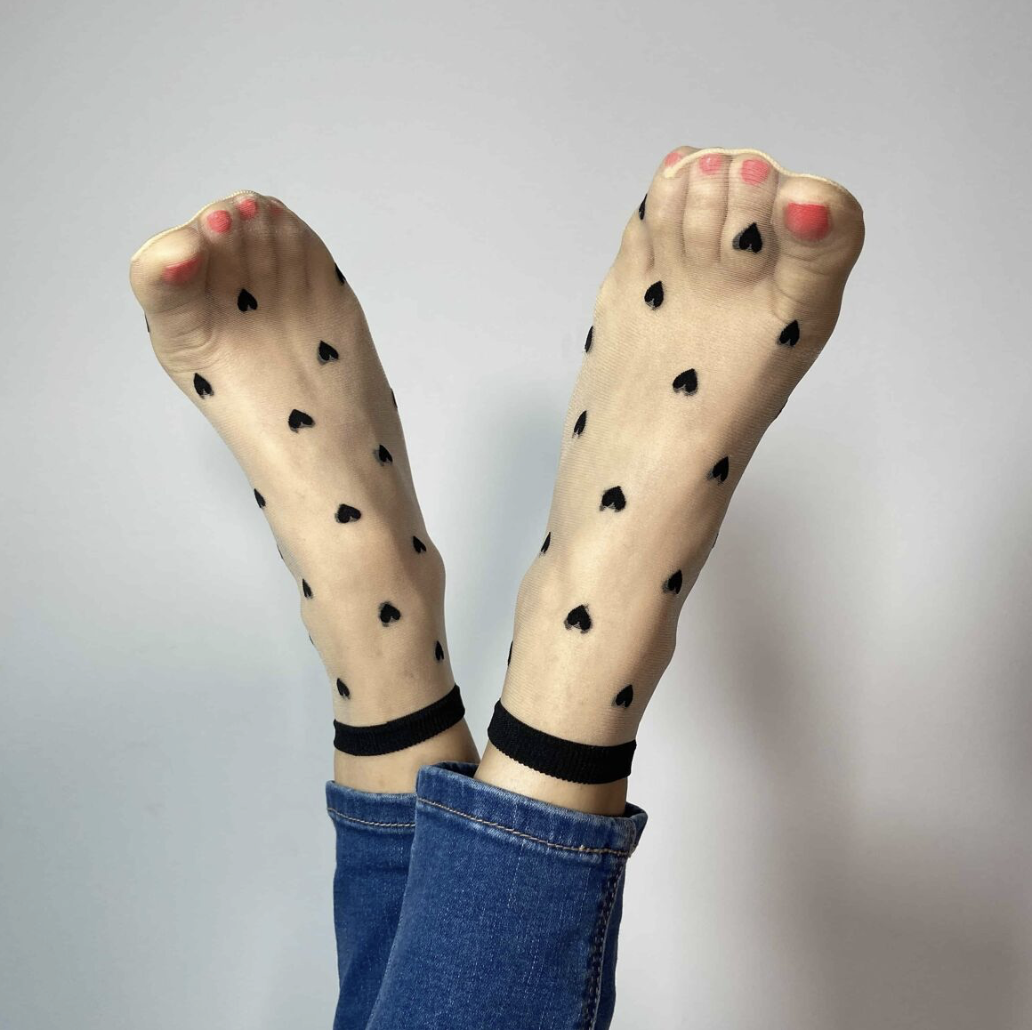 Διάφανα καλτσάκια με μικρές μαύρες καρδιές.