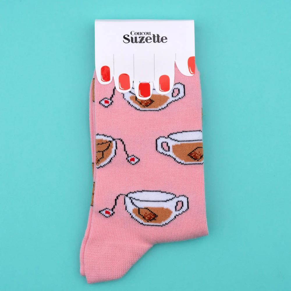 Τι θα ήταν ο χειμώνας χωρίς άνετες κάλτσες για να γιορτάσουμε την ώρα του τσαγιού; Λατρεύουμε αυτό το αταίριαστο ζευγάρι με μπισκότα που μοιάζουν με αυτά της γιαγιάς μας από τη μία πλευρά και χαριτωμένα μικρά τσάγια που φτιάχνονται από την άλλη πλευρά. Όλα αυτά σε ένα όμορφο ροζ φόντο για να ξεχάσουμε τον κακό καιρό και τις χαμηλές θερμοκρασίες.