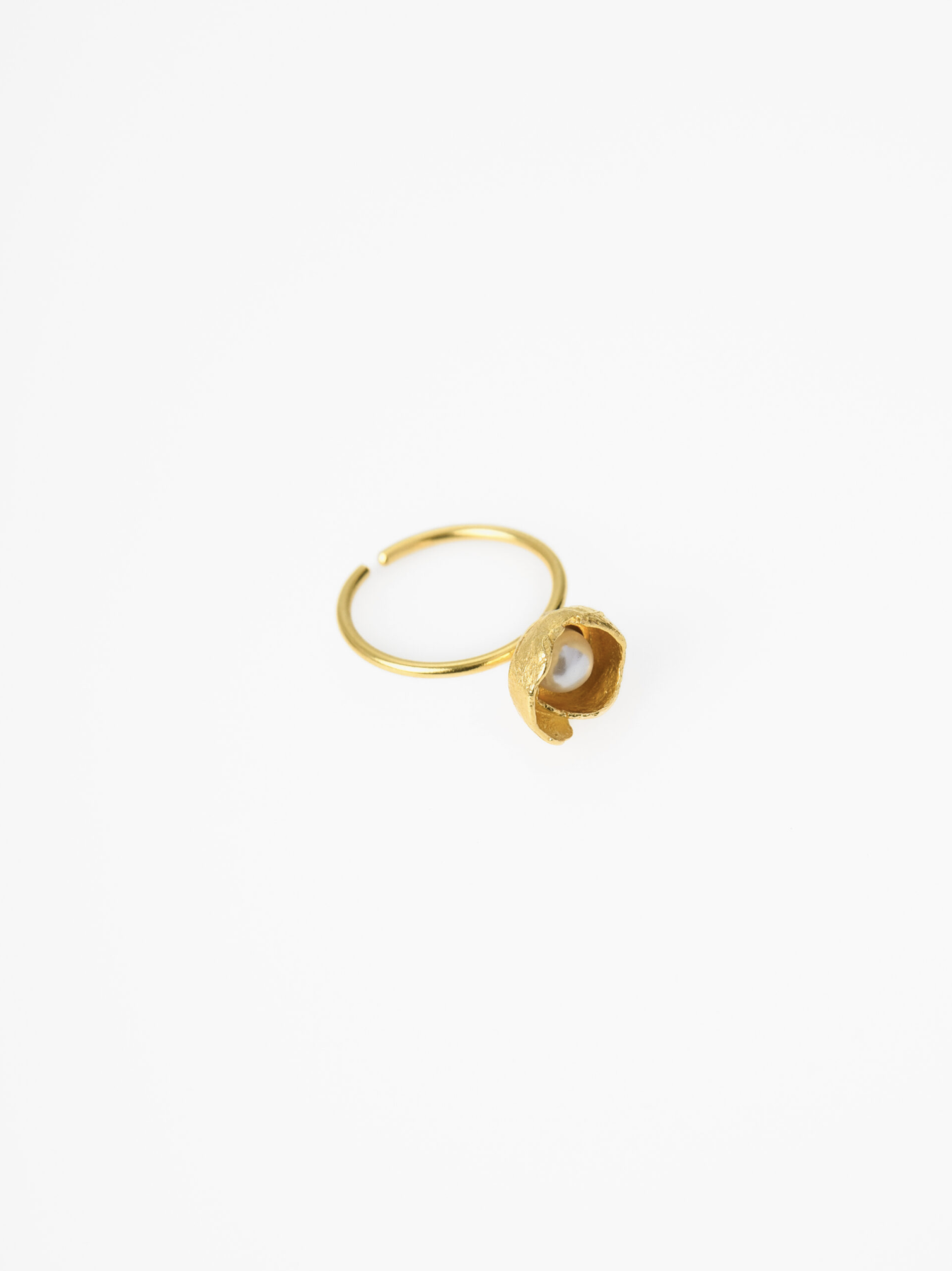 The design is made of 24k goldplated bronze with pearl stone. It is an adjustable open ring.