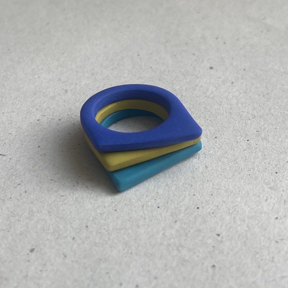 Ένα σετ από τρία ίδια δαχτυλίδια, σχεδιασμένα για να φοριούνται μαζί ή και μόνα τους.