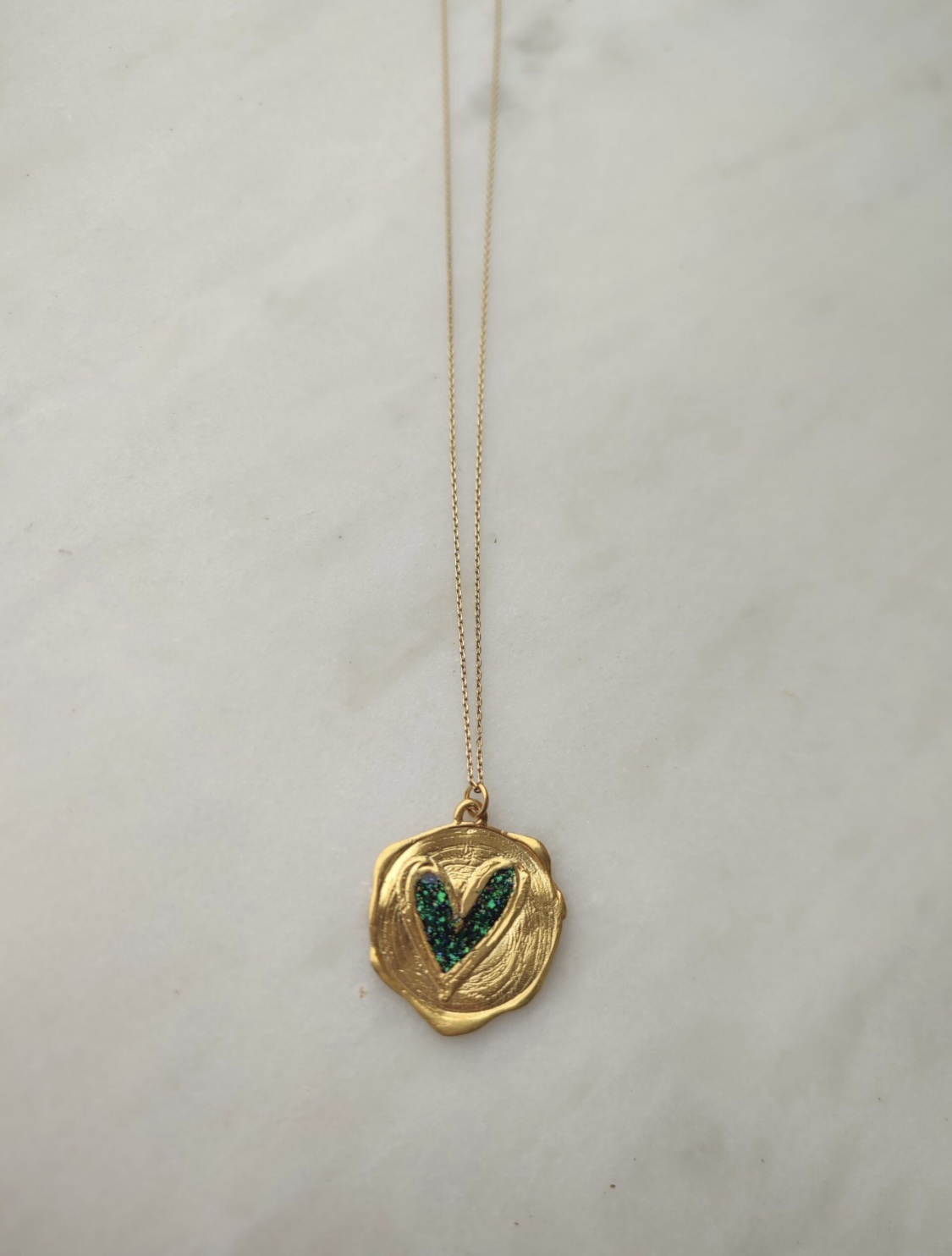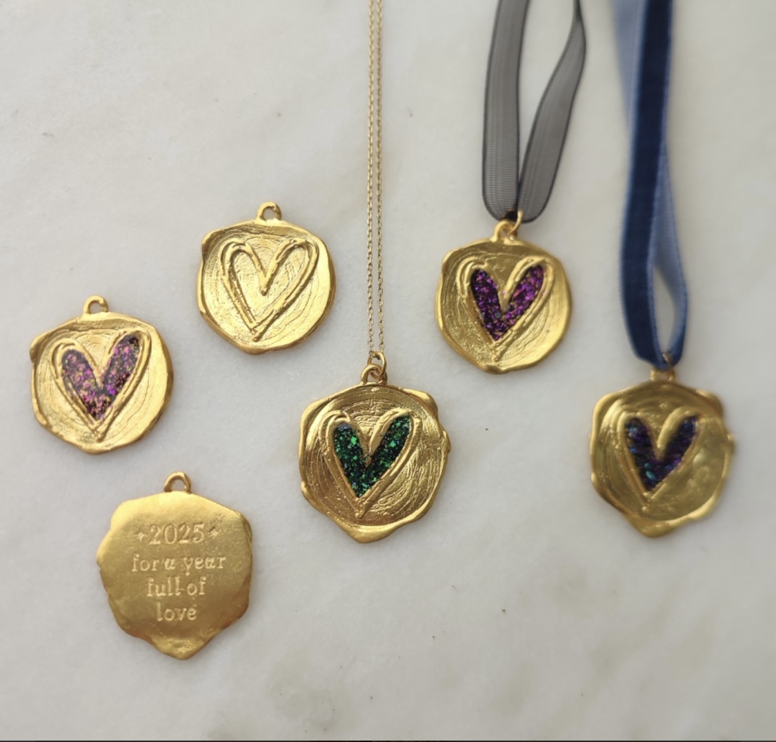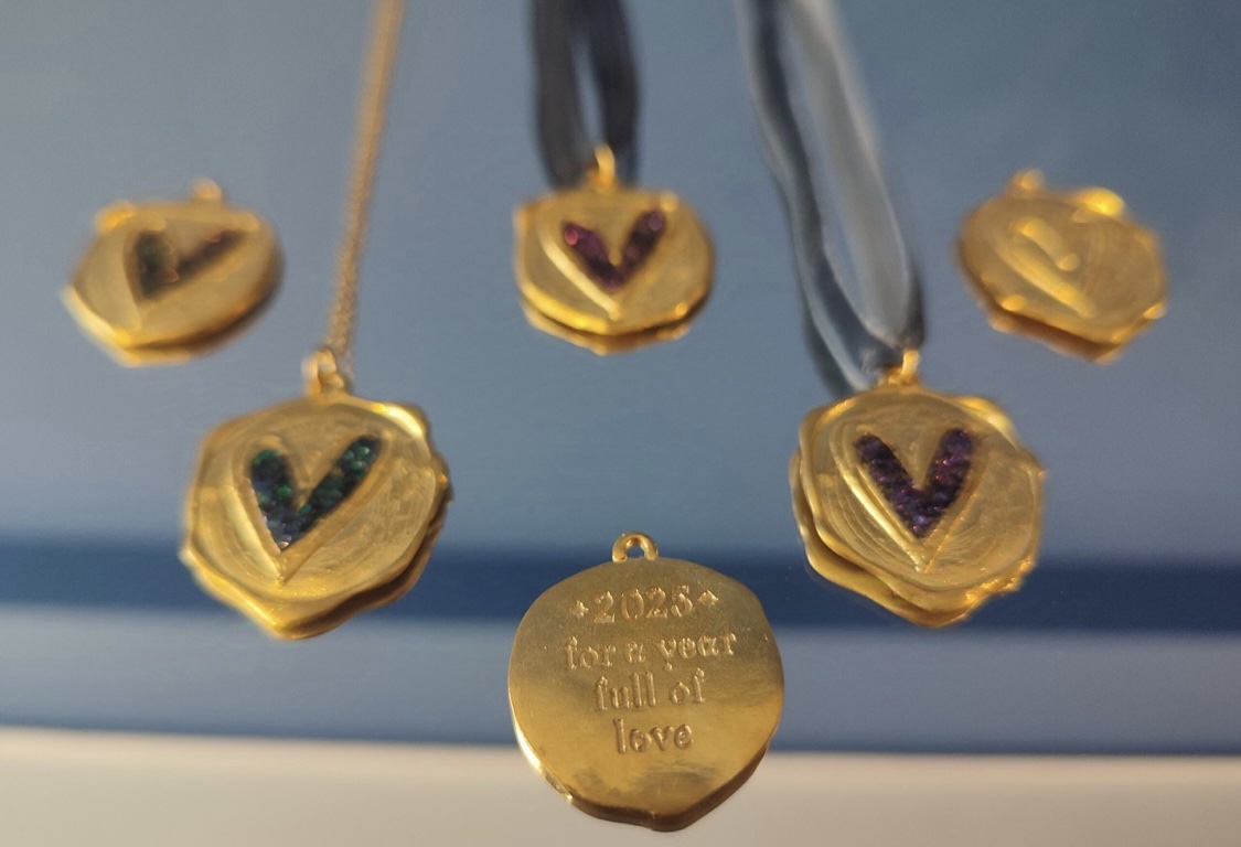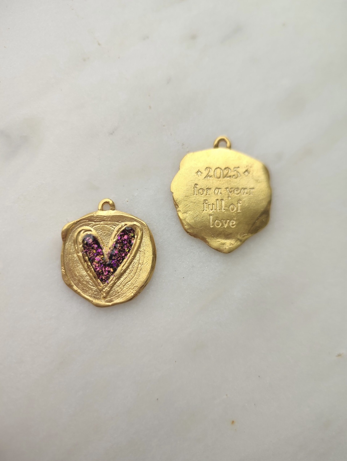 Κολιέ γούρι για το 2025, επιχρυσωμένο με χρωματιστή καρδιά και το πιο όμορφο μήνυμα στην πίσω πλευρά.
