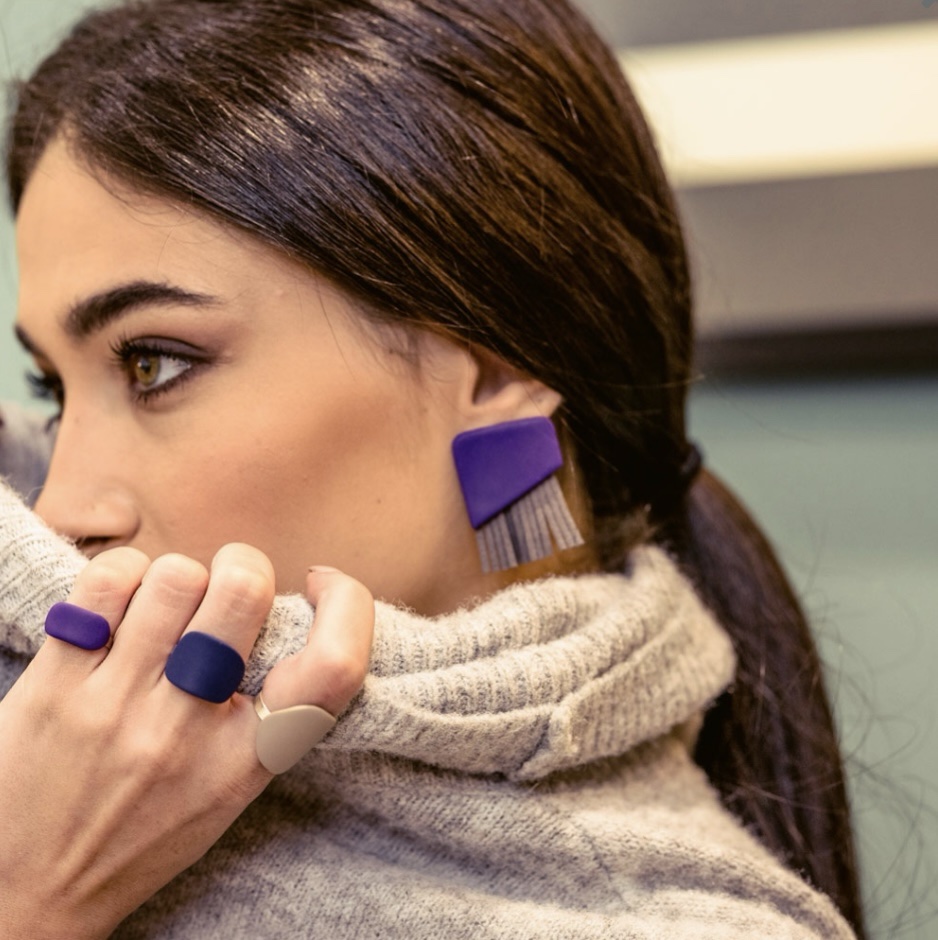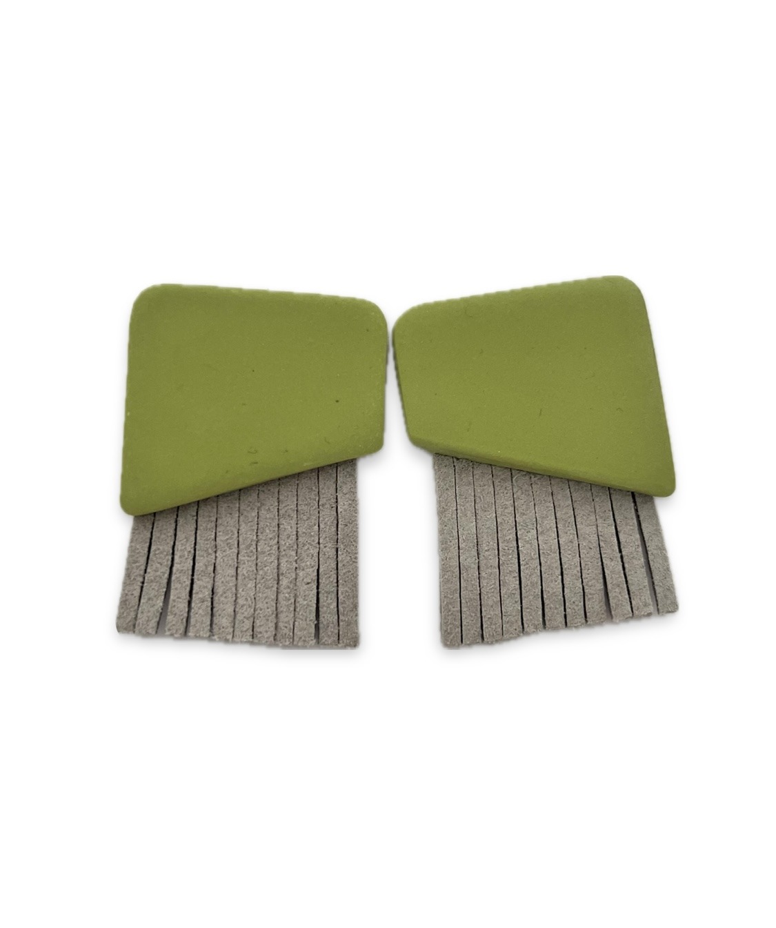 Χειροποίητα σκουλαρίκια από πολυμερικό πηλό με τρέσα σουέτ.