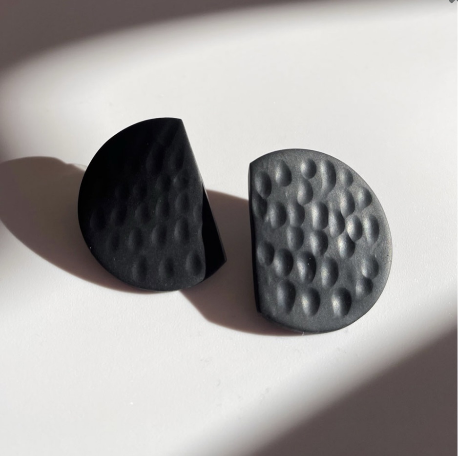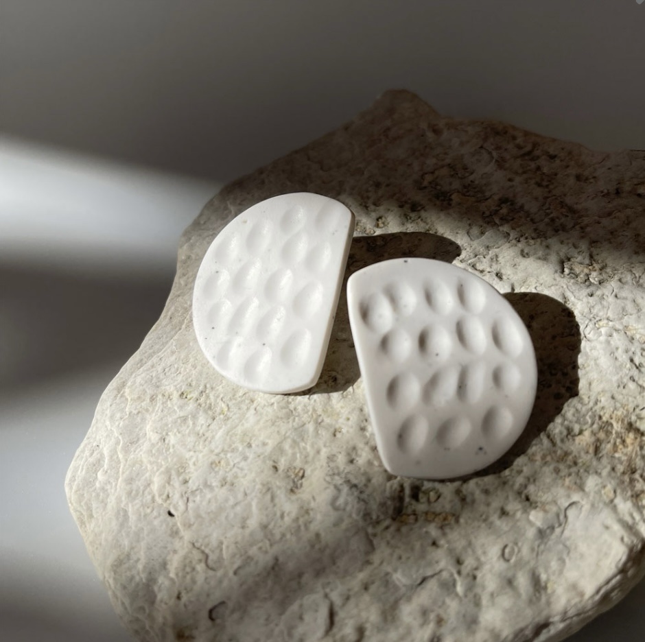 Ανακαλύψτε την κομψότητα στην απλότητα με τα χειροποίητα σκουλαρίκια μας από πολυμερικό πηλό, σχεδιασμένα να είναι εξαιρετικά ελαφριά και πολύχρωμα. Σε ημικυκλικό σχήμα και με όμορφες ανάγλυφες λεπτομέρειες, αυτά τα σκουλαρίκια θα σας προσφέρουν μια μοναδική και κομψή εμφάνιση. Η άνεσή τους εξασφαλίζει ότι μπορούν να φορεθούν με ευκολία όλη την ημέρα.