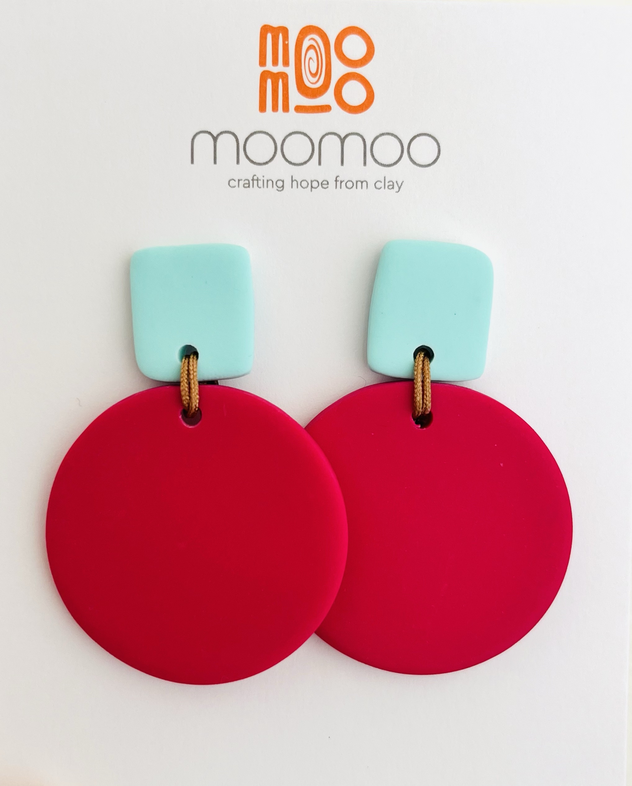 Χειροποίητα δίχρωμα σκουλαρίκια από πολυμερικό πηλό.