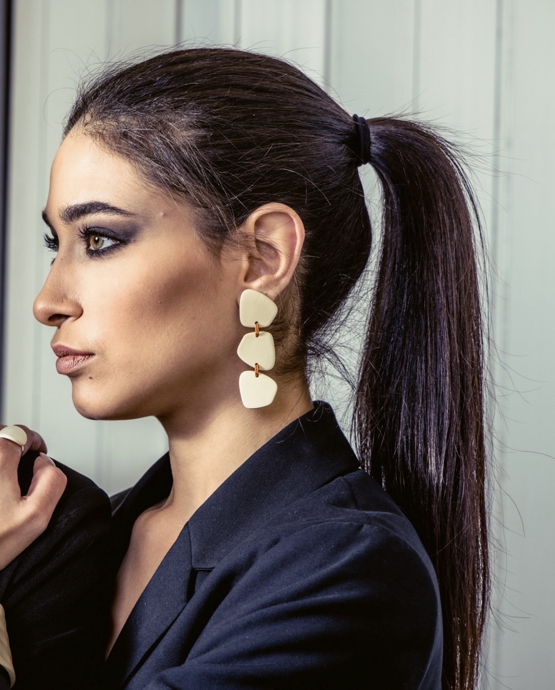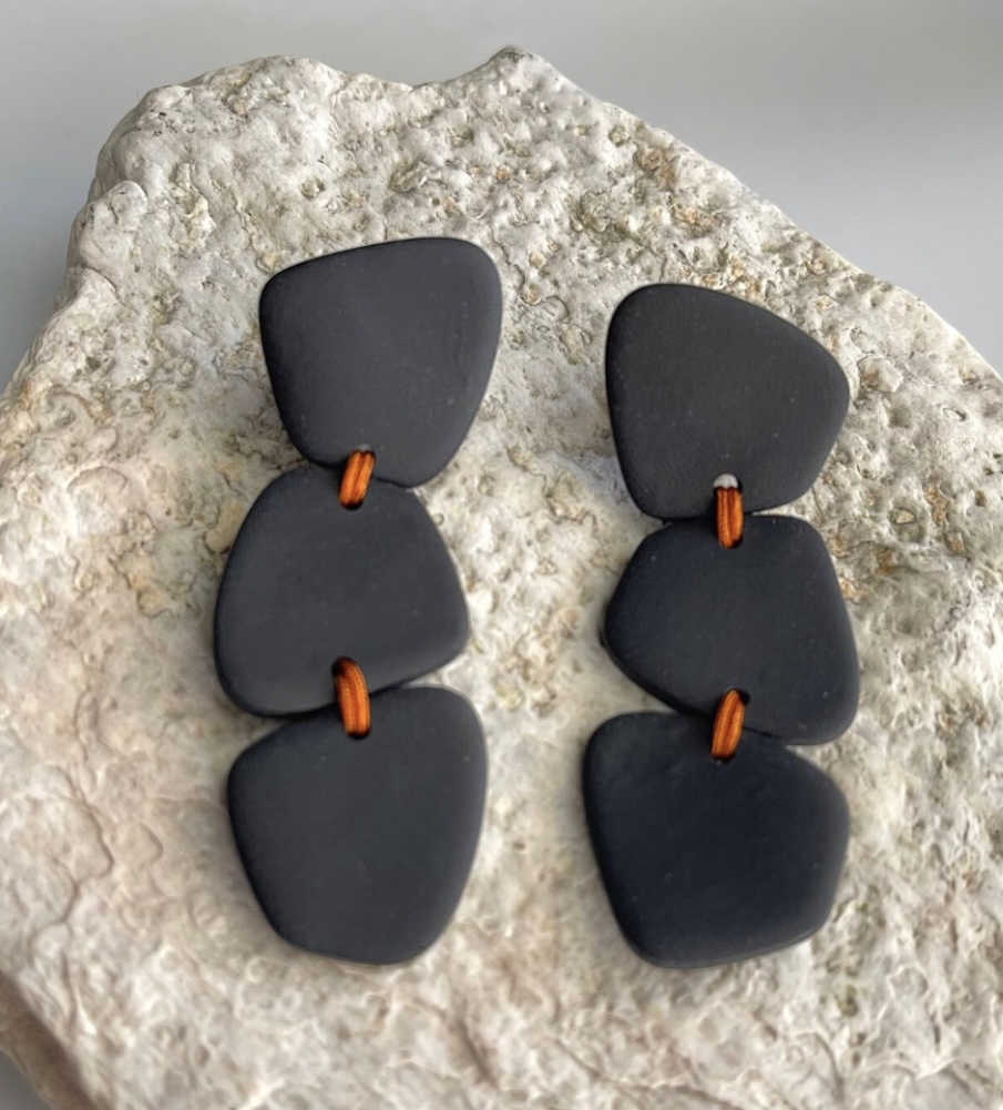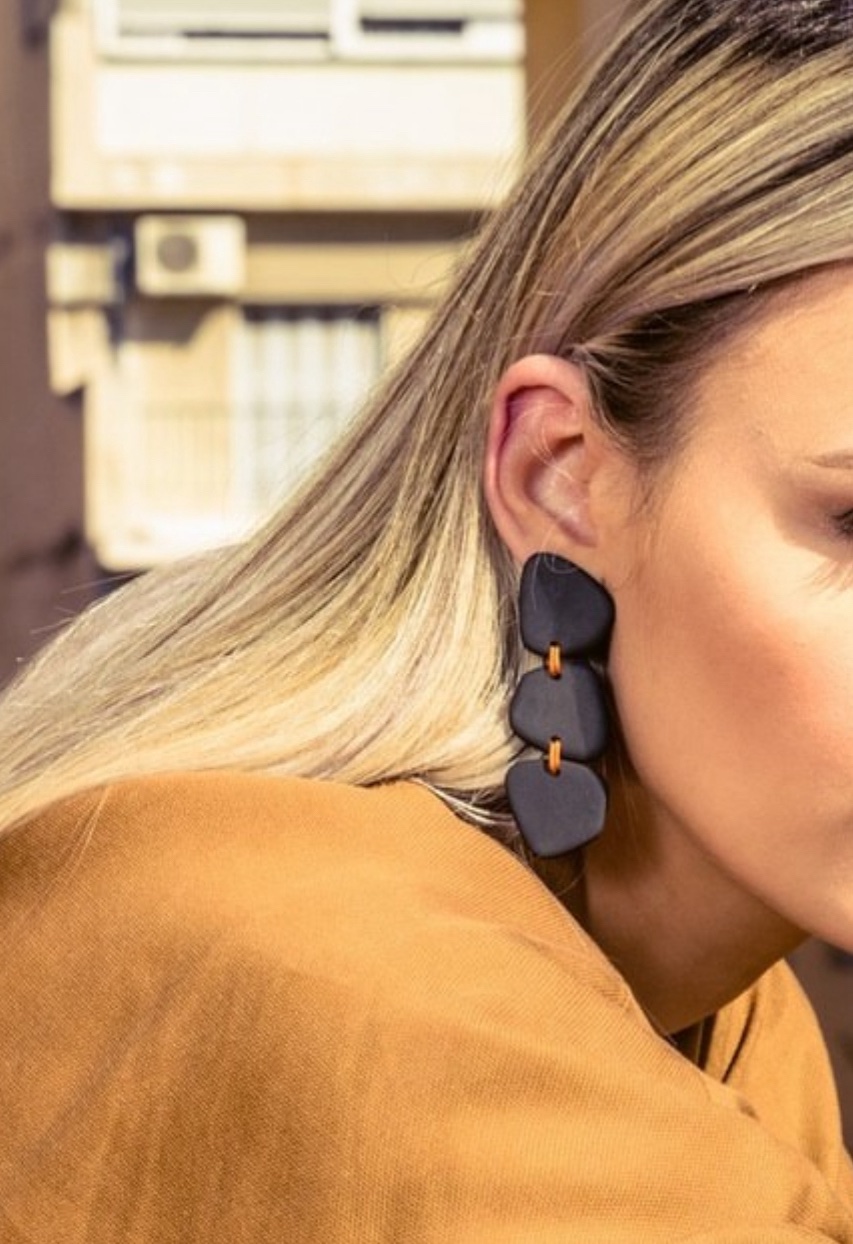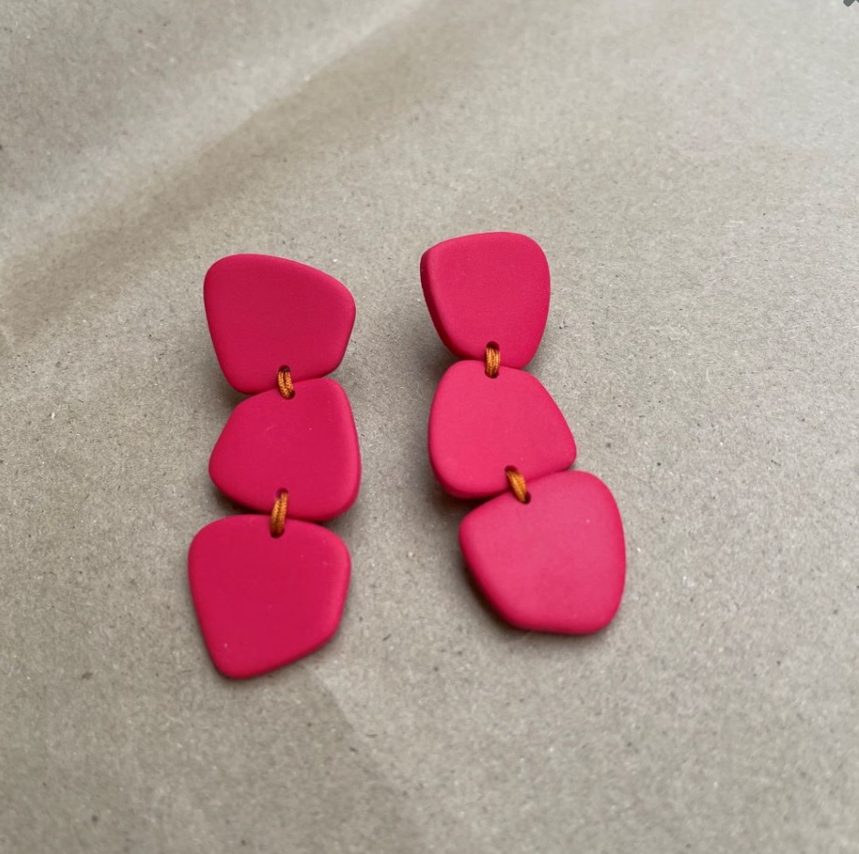 Χειροποίητα κρεμαστά σκουλαρίκια από πολυμερικό πηλό.