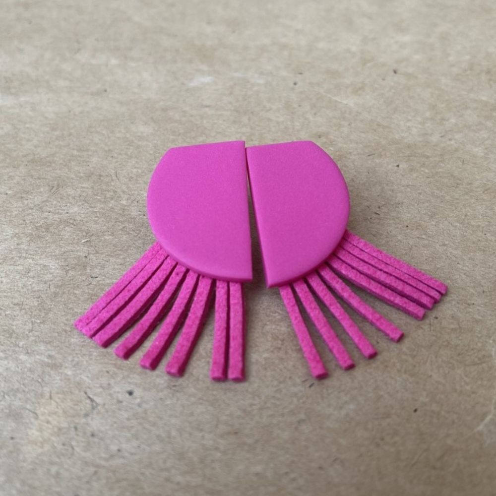 Χειροποίητα σκουλαρίκια από πολυμερικό πηλό με τρέσα σουέτ.