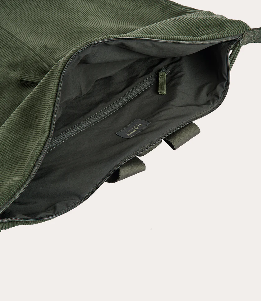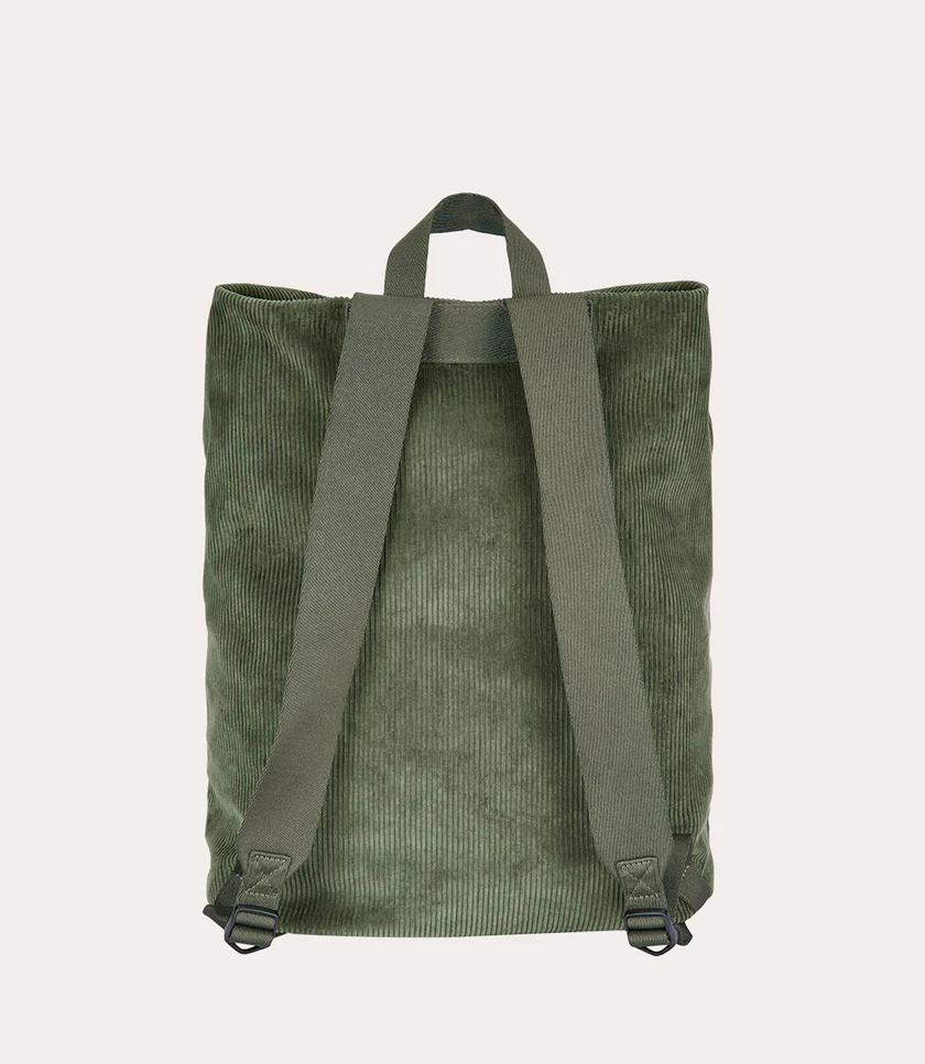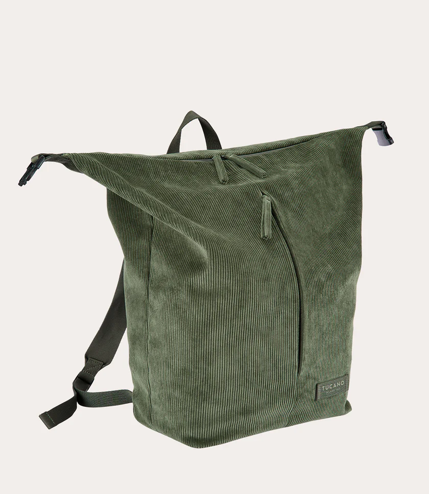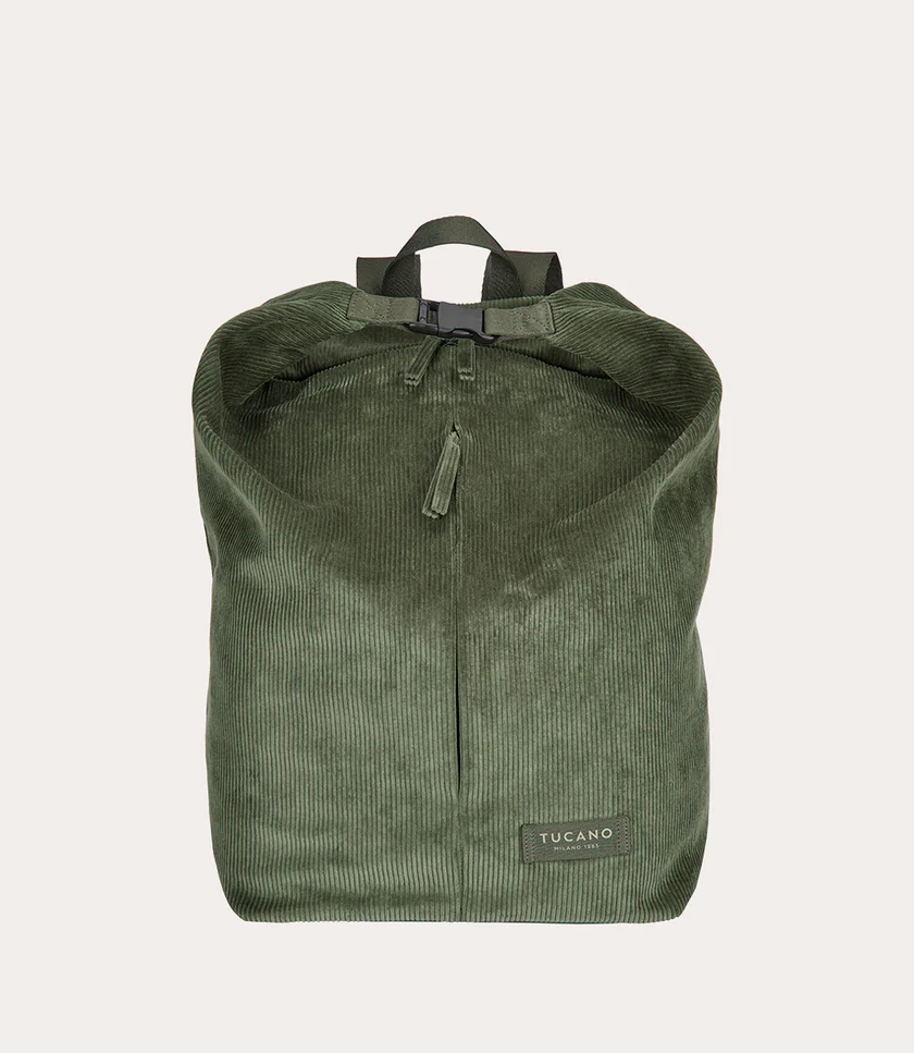 Βελούδινο σακίδιο πλάτης από βαμβακερό βελούδο με ρυθμιζόμενες τιράντες ώμου, φαρδύ άνοιγμα στο πάνω μέρος με φερμουάρ και λαβή μεταφοράς με αγκράφα fastex.