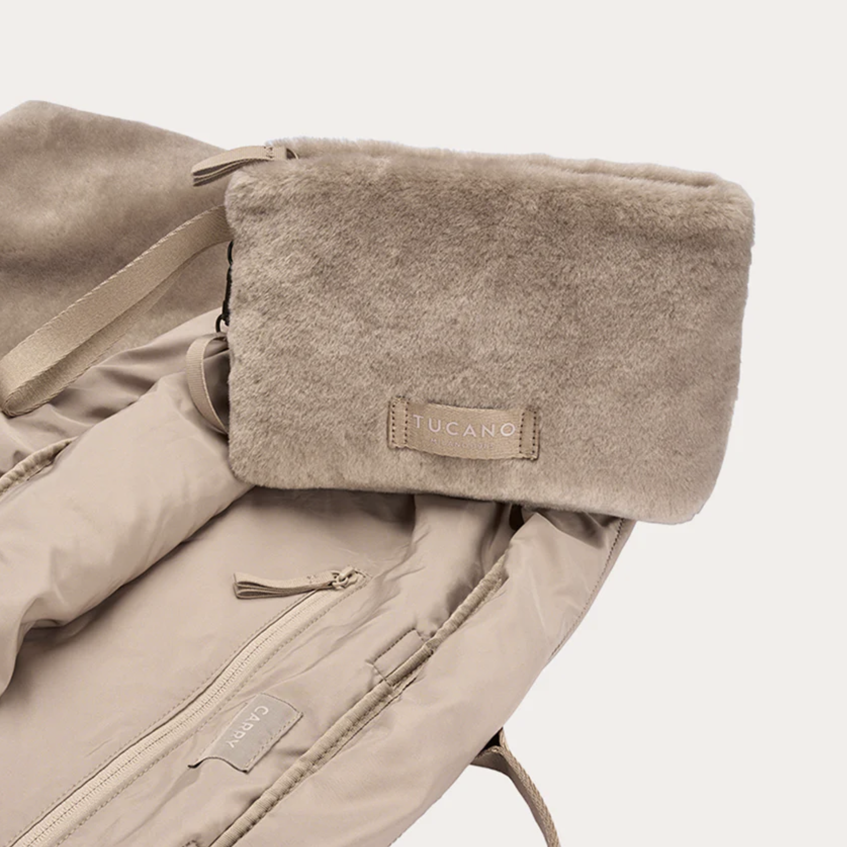 Εξοπλισμένη με μια βολική εσωτερική τσέπη και μια μεγάλη εξωτερική τσέπη, η τσάντα Carry Fur διαθέτει αφαιρούμενη εσωτερική θήκη.
