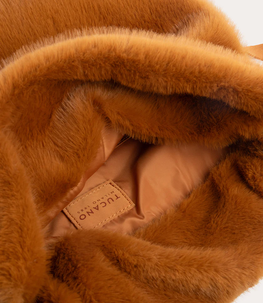 Σακίδιο πλάτης από συνθετική γούνα με κορδόνι περίσφιξης και εσωτερική επένδυση.