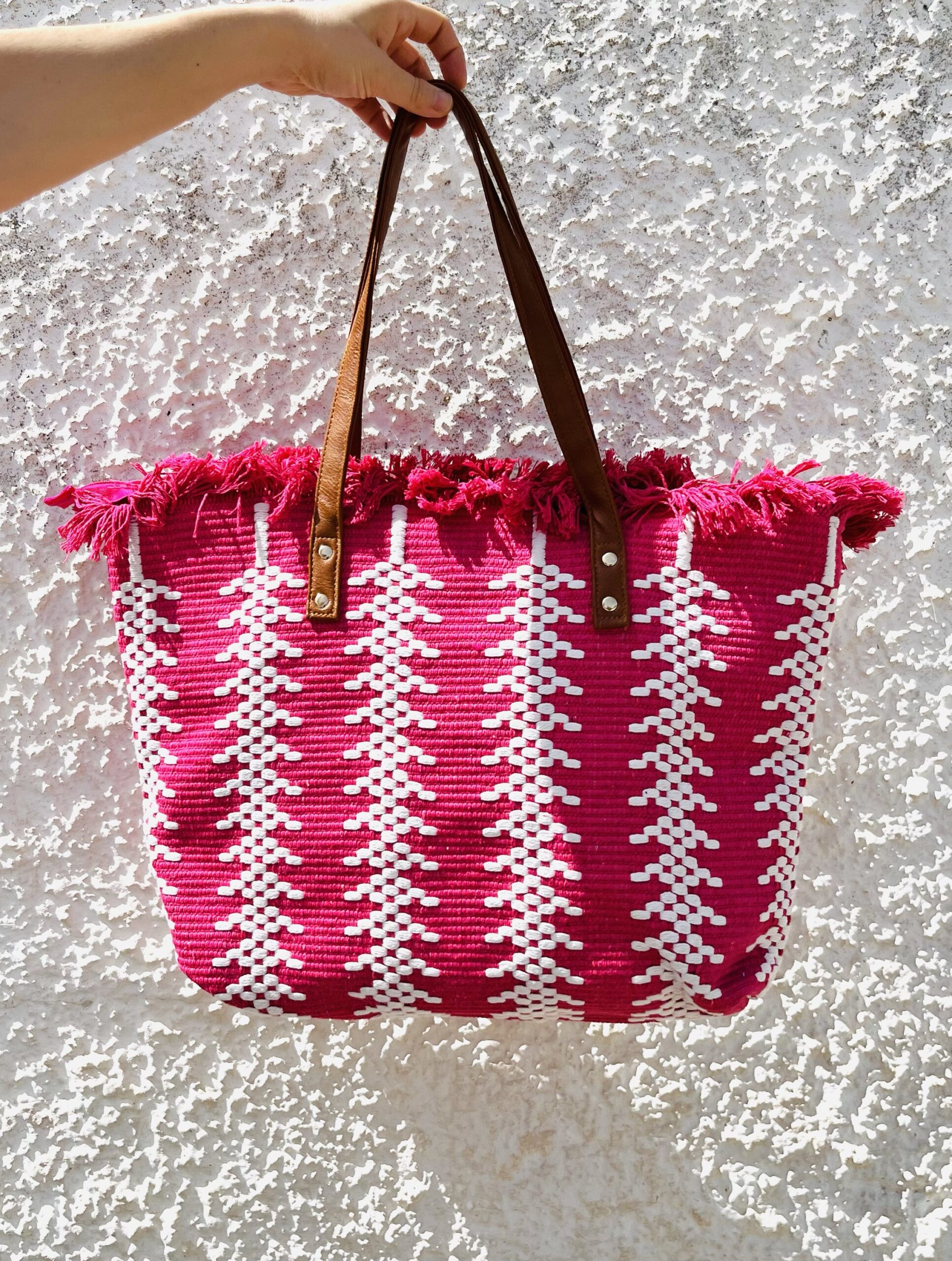 Τσάντα ώμου με κρόσσια και κλείσιμο φερμουάρ.