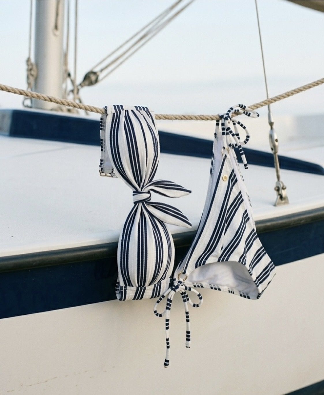 Το μπλε και άσπρο ναυτικό ριγέ ζακάρ ύφασμα προσφέρει υφή, δομή και μια μοντέρνα εκδοχή του κλασικού στυλ.
