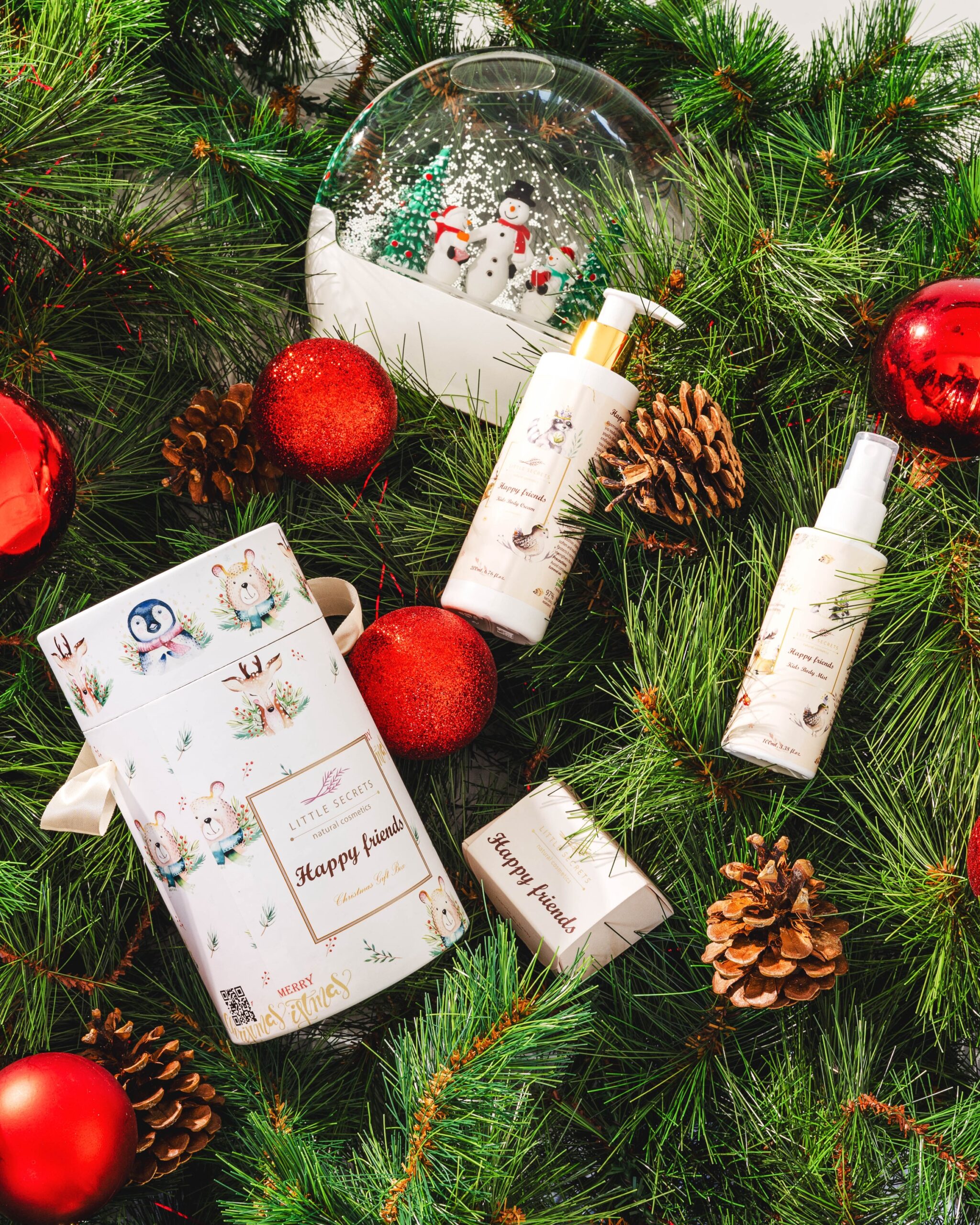 Χριστουγεννιάτικο στρογγυλό κουτί δώρου Happy Friends