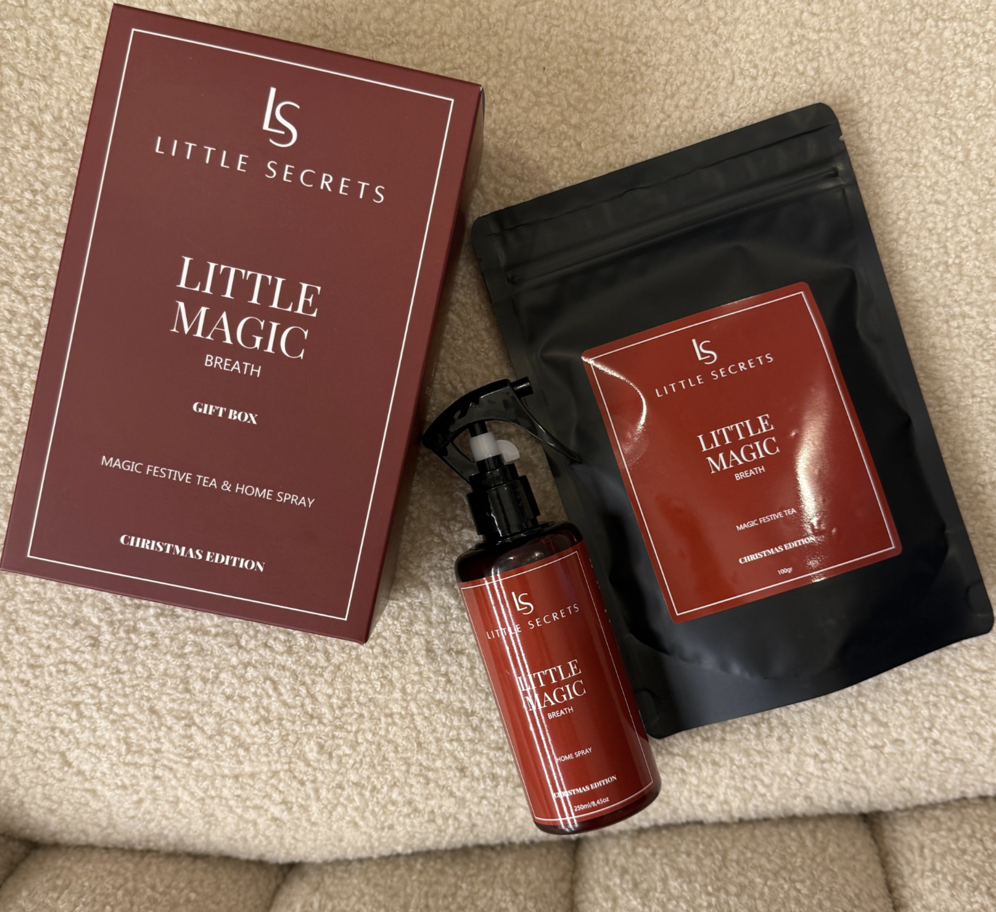 Το Little Magic Breath Gift Set της Little Secrets είναι ένας εκλεπτυσμένος συνδυασμός αρώματος και χαλάρωσης — με γιορτινό αρωματικό τσάι με γεύση φρούτων και μπαχαρικών και home spray με νότες βανίλιας, λευκά άνθη και χρυσαφένιο κεχριμπάρι για έναν χώρο που εκπνέει γαλήνη.