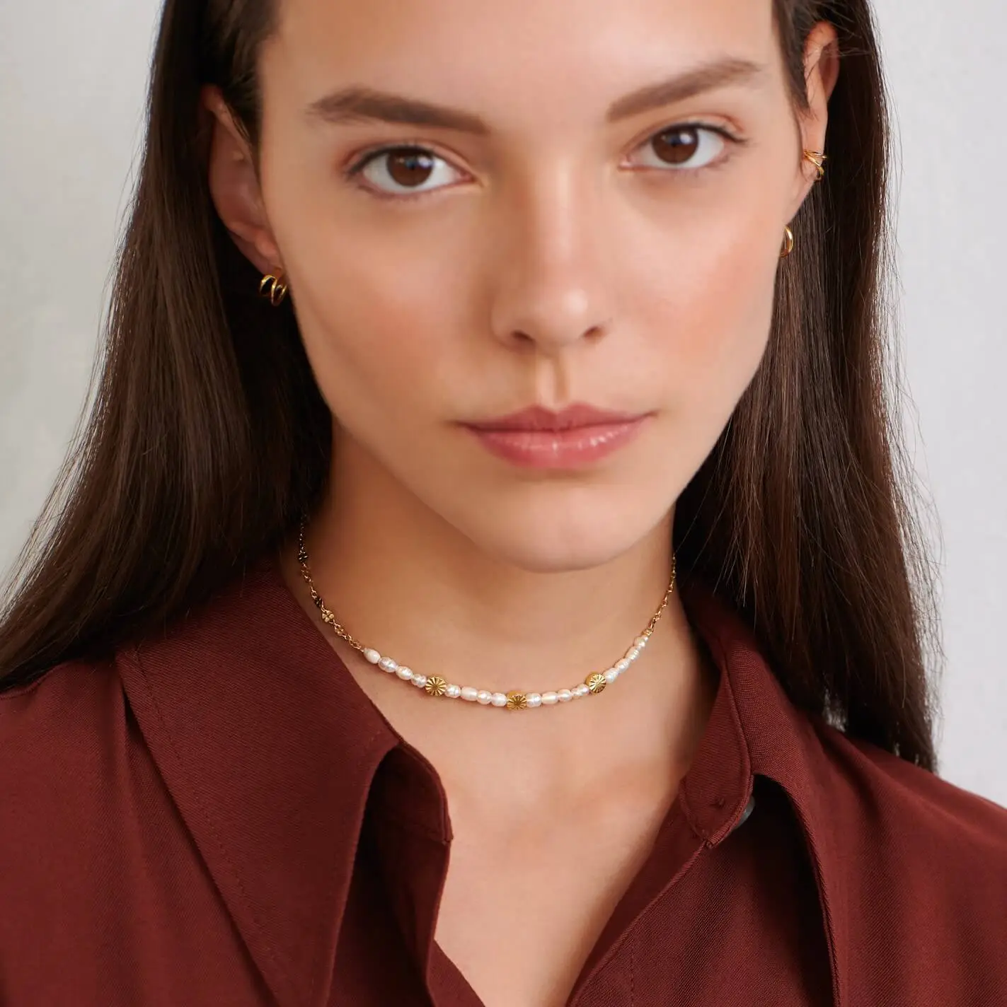 Τσόκερ κολιέ από επιχρυσωμένο ασήμι 925 και φυσικά μαργαριτάρια καλλιέργειας.
