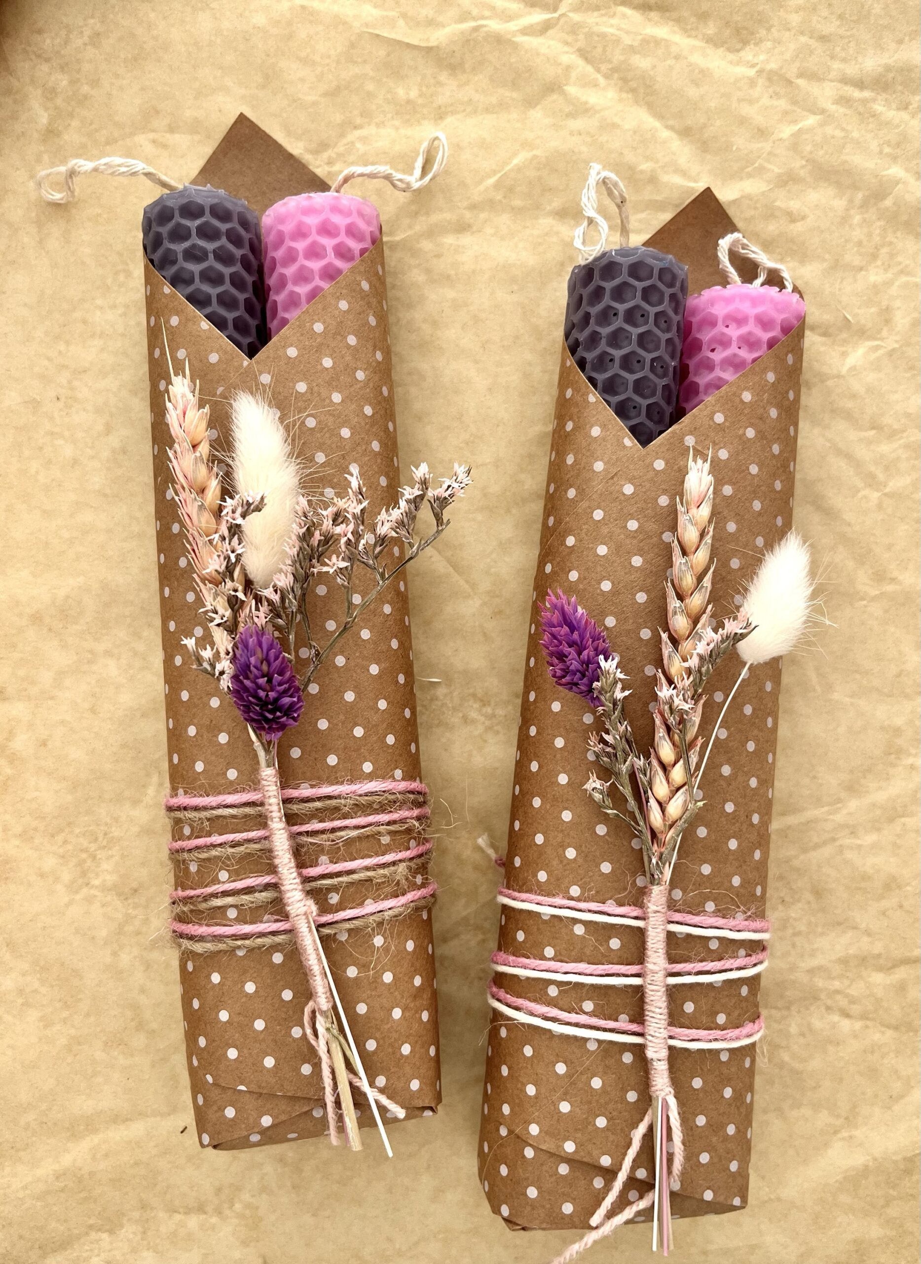 Το σετ αποτελείται από δυο κεριά φτιαγμένα από κηρήθρα μελισσών.