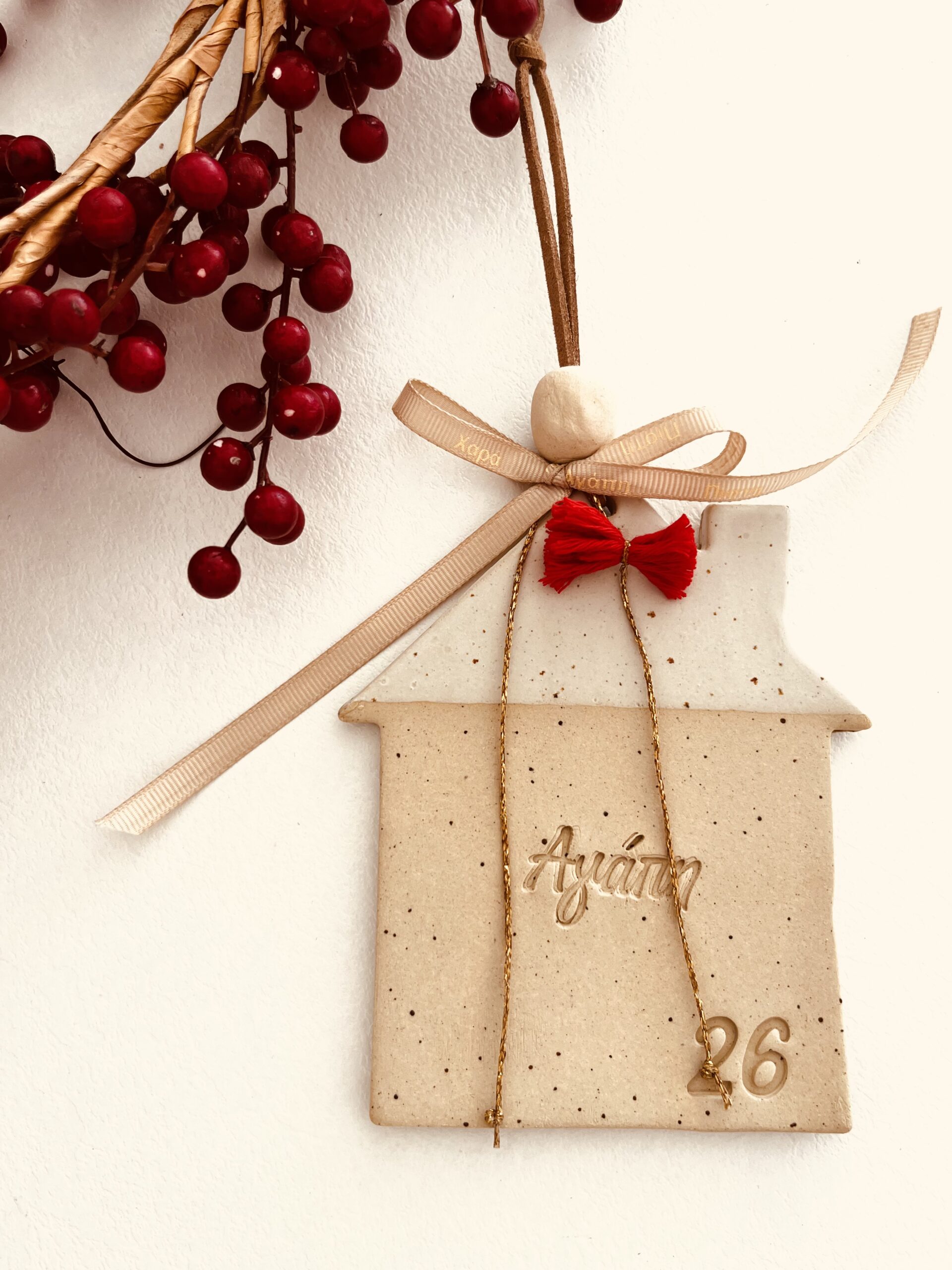 Είναι κεραμικό, χειροποίητο με υπέροχο λευκό υάλωμα, ανάγλυφη ευχή (αγάπη) και την σφραγίδα Talu στο πίσω μέρος.