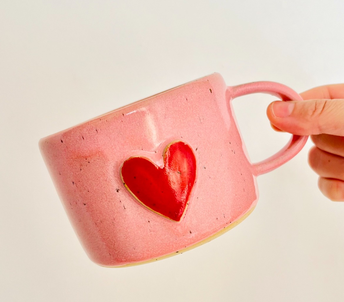Χειροποίητη κεραμική κούπα με καρδιά που προεξέχει.