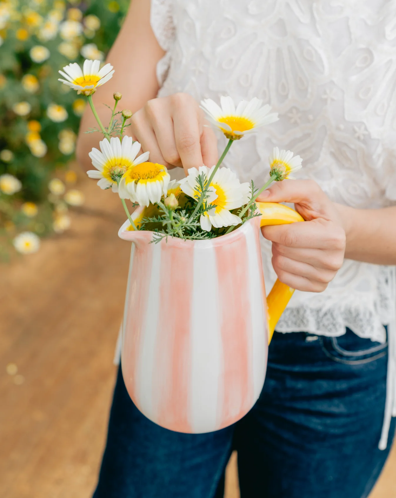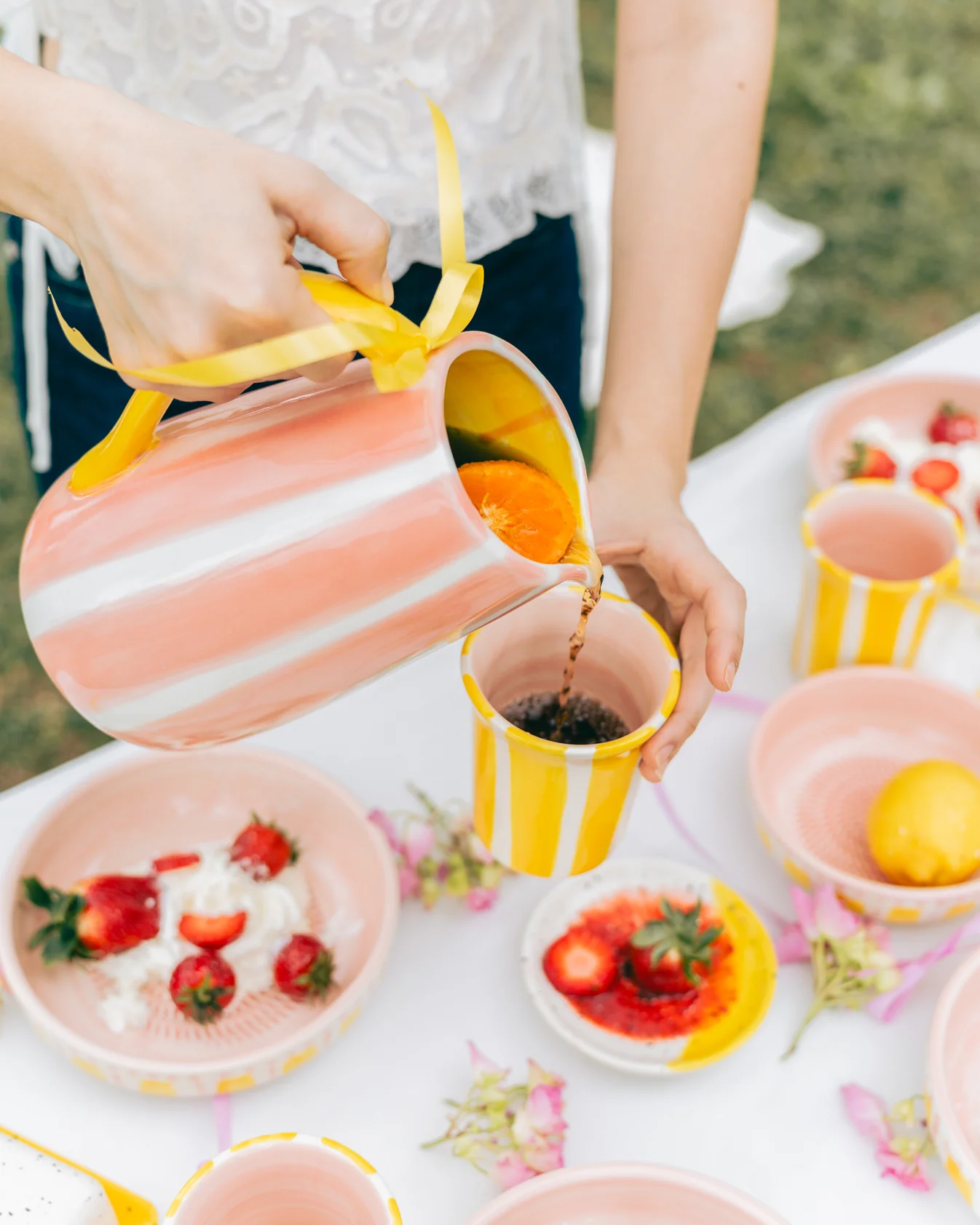 Δώστε χρώμα και χαρά στο τραπέζι σας με την κεραμική κανάτα Valentina σε παστέλ ροζ και κίτρινο.