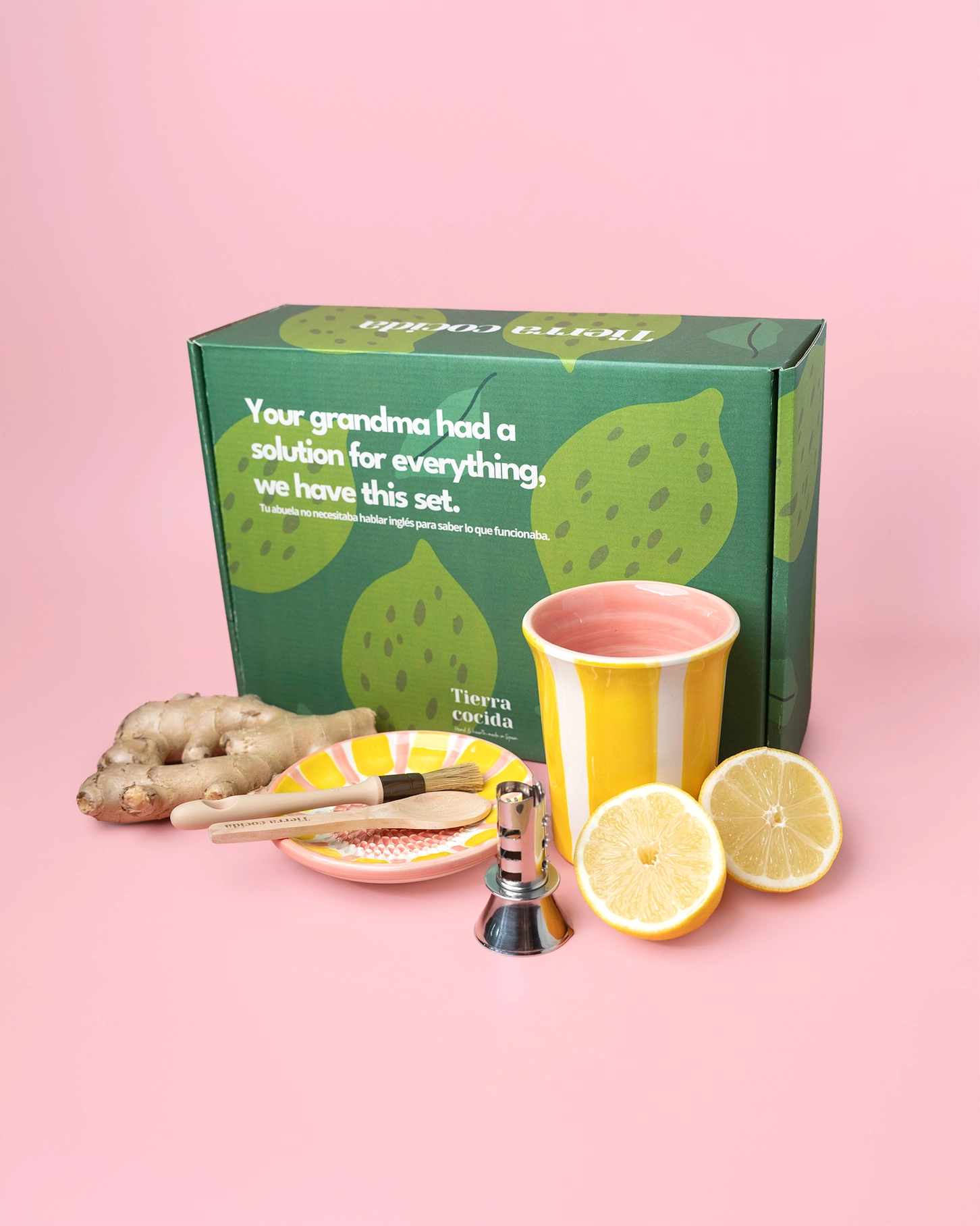 Ανακαλύψτε τη ζεστασιά της παράδοσης και της δεξιοτεχνίας με αυτό το όμορφα επιμελημένο κεραμικό σετ, σχεδιασμένο για να κάνει την παρασκευή εγχυμάτων τζίντζερ και λεμονιού μια καθημερινή ιεροτελεστία αυτοφροντίδας και απλότητας.