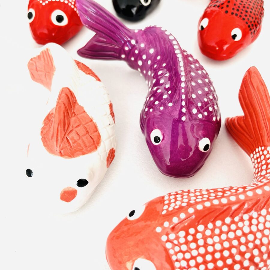Υπέροχο κεραμικό ψάρι Koi, φτιαγμένο και ζωγραφισμένο στο χέρι.