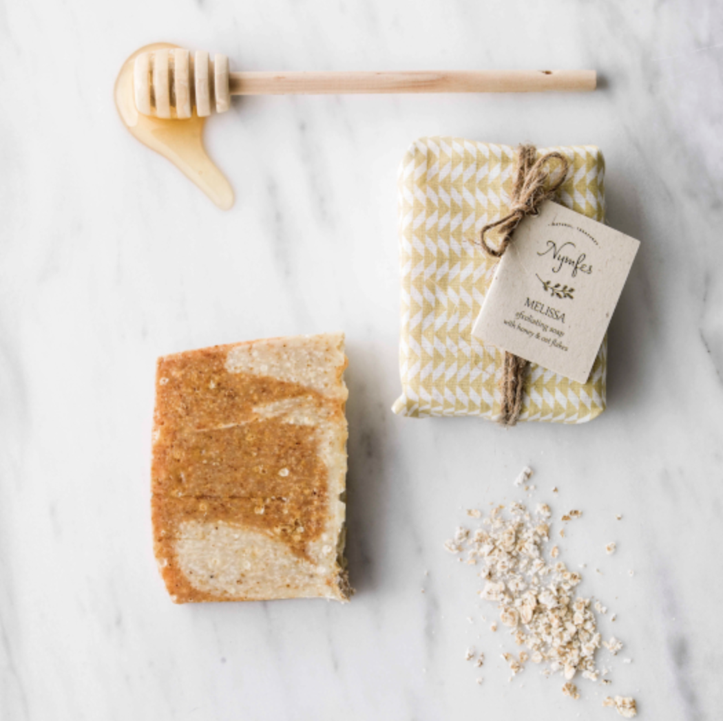 Σαπούνι απολέπισης “Μέλισσα” από φυτικά έλαια υψηλής ποιότητας με βάση το ελληνικό εξαιρετικό παρθένο ελαιόλαδο. Περιέχει μέλι και κουρκουμά, γνωστά για τις αντιοξειδωτικές και αντιμικροβιακές τους ιδιότητες. Οι νιφάδες βρώμης απομακρύνουν ήπια τα νεκρά κύτταρα και αφήνουν το δέρμα απαλό και ανανεωμένο. Αρωματισμένο με δροσιστικό αιθέριο έλαιο λεμονιού, σας χαρίζει ενέργεια και τόνωση.